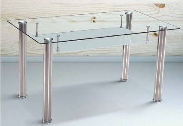 MESA CRISTAL 140X80 CON BANDEJA Y PATAS CROMADAS