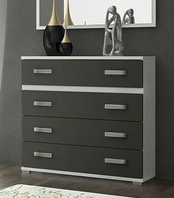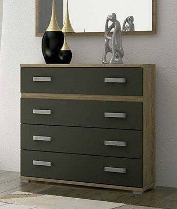 Cómoda de 4 cajones con corredera y tiradores color plata