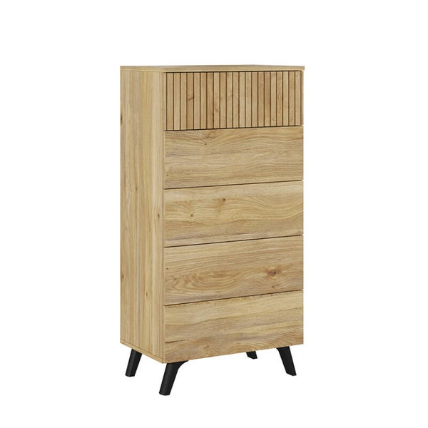 Sinfonier de cinco cajones con sistema de apertura de pulsadores y patas elevadas.