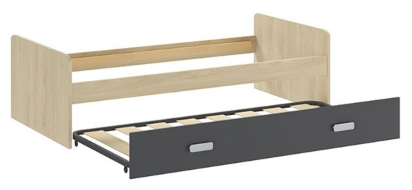 Cama nido 2 camas de 90x190, carro con sistema de elevación. Incluye sommier de apoyo de colchón para cama de arriba y sommier de arrastre elevador de abajo. No incluye colchones.