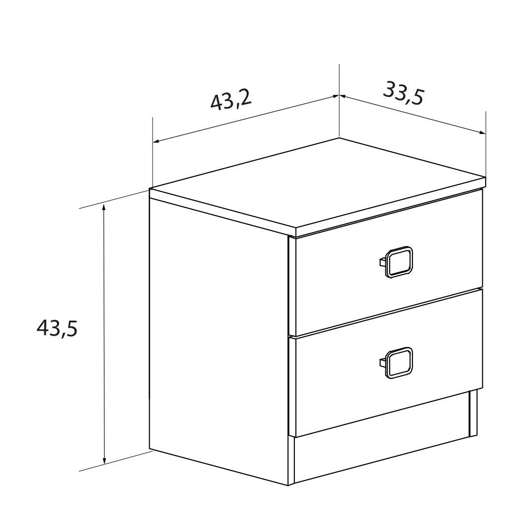Mesa de noche con dos cajones de melamina y tiradores plata