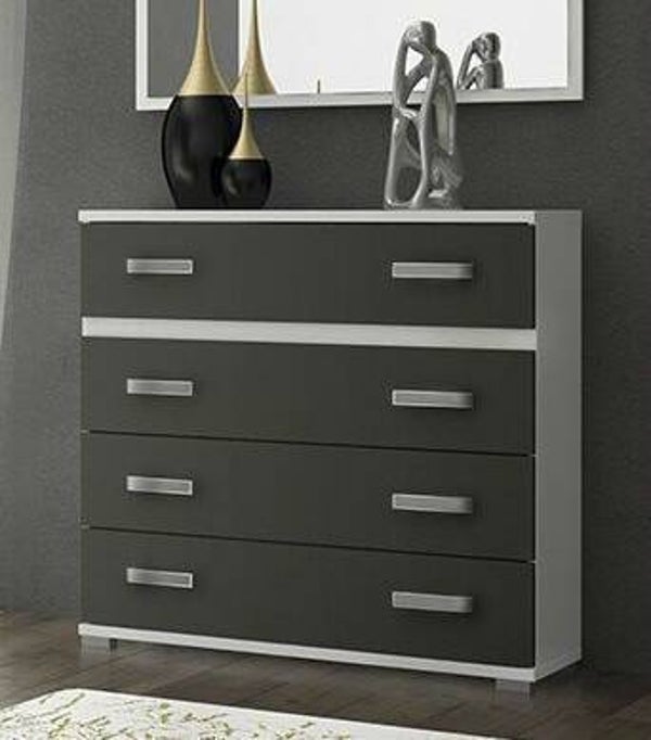 CABECERO 260CM CON LUCES LED+2 MESAS DE NOCHE+1 CÓMODA+ 1 ESPEJO BLANCO-GRÁFITO