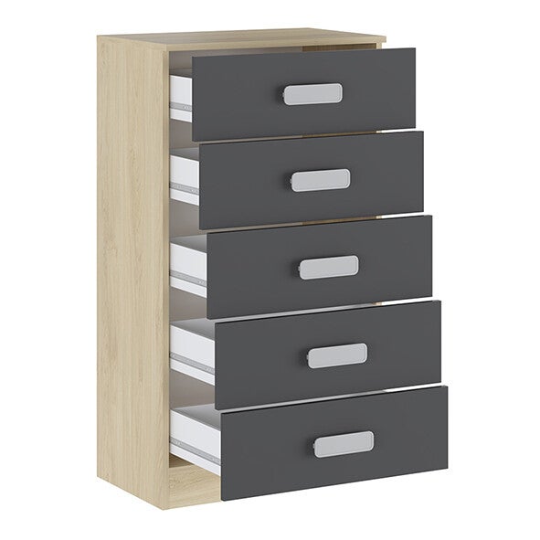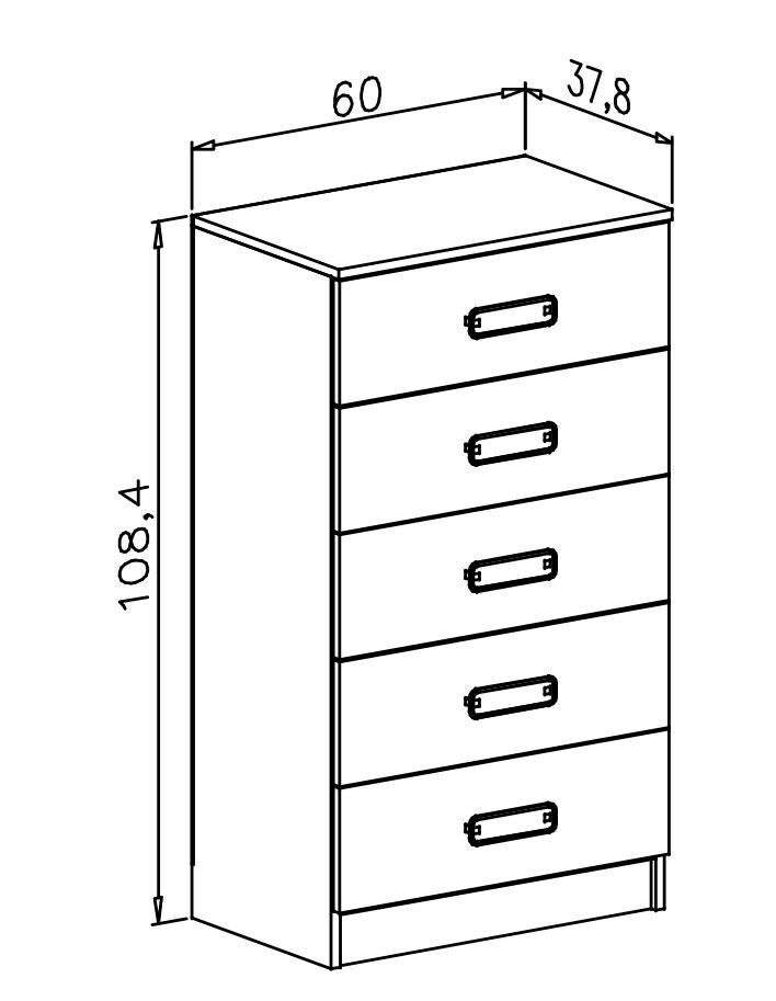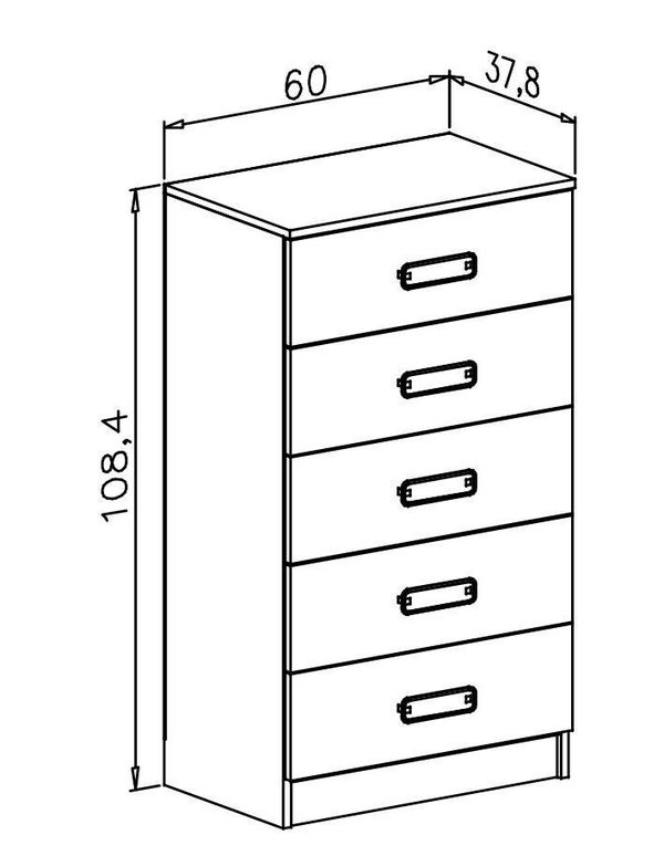 -Sinfonier de cinco cajones con tiradores en color plata