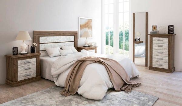 CABECERO+2 MESAS DE NOCHE TRES CAJONES+1 SINFONIER+1 ESPEJO