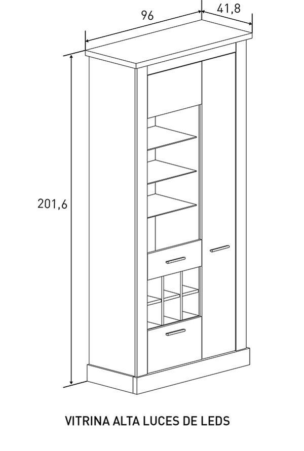VITRINA CON BODEGA Y LUCES LED 96CMS
