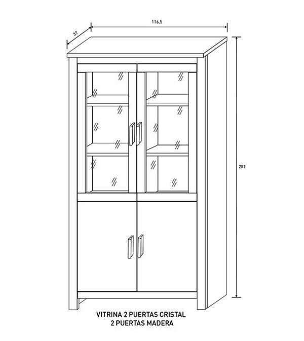 Vitrina con 2 puertas con cristal y 2 puertas de madera y tiradores en color plata