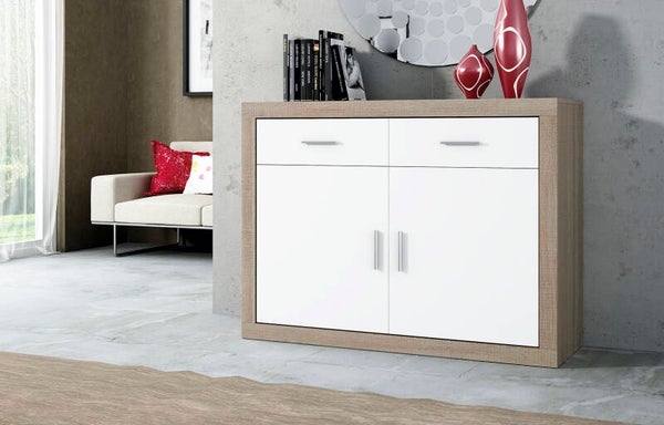 Aparador con 2 puertas y 2 cajones con corredera y tiradores color plata