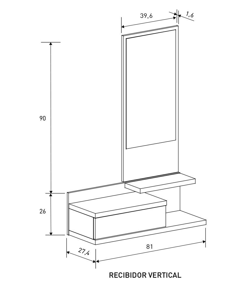 RECIBIDOR PARA COLGAR 1 CAJÓN Y ESPEJO VERTICAL