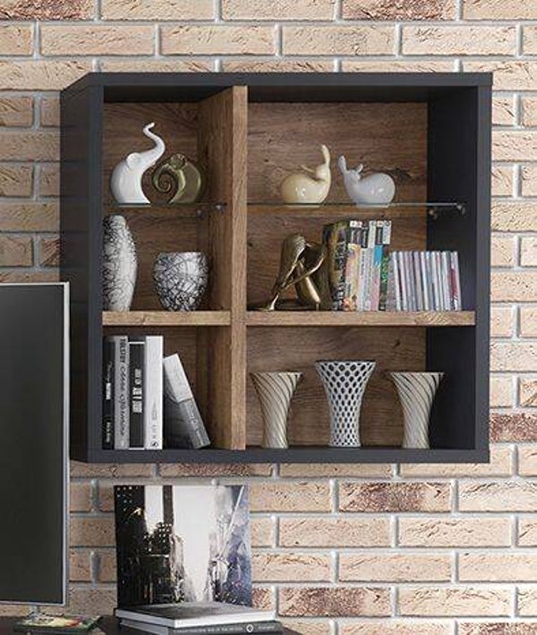 ESTANTERIA CON CRISTAL GRÁFITO-ROBLE