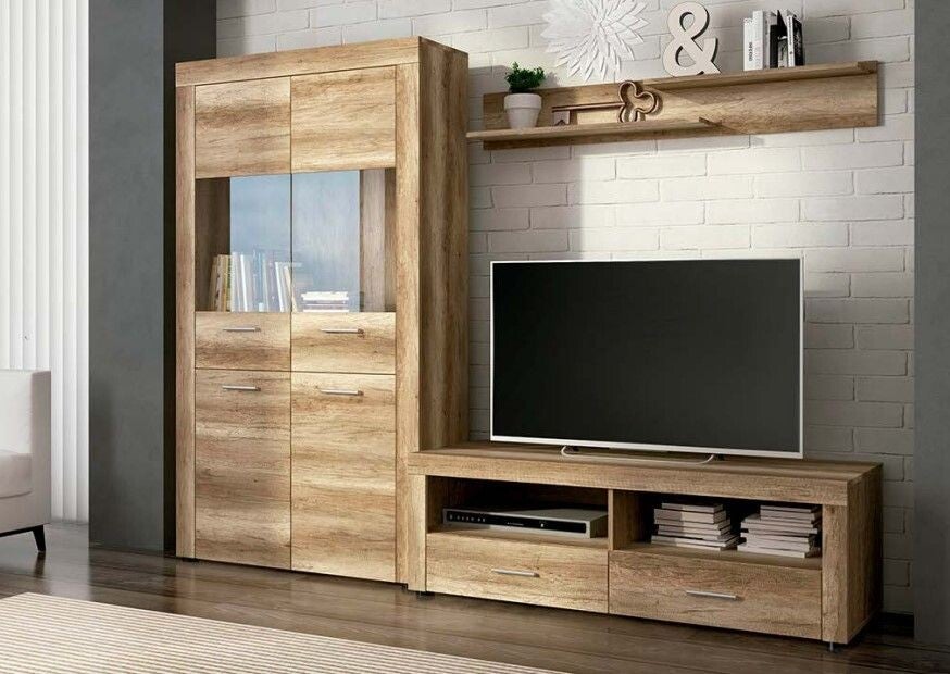 COMPOSICIÓN 235CM: MUEBLE DE TV 135CM+VITRINA 1 METRO+ ESTANTE