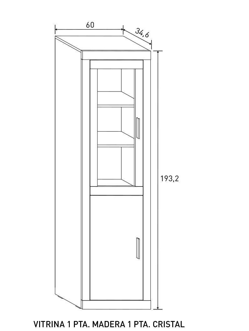 -Vitrina con 1 puerta de madera y 1 puerta con cristalero