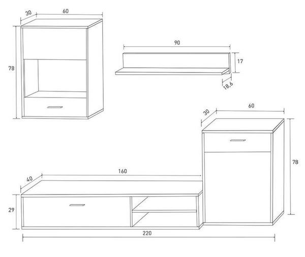 COMPOSICIÓN 220CM: MUEBLE DE TV+ALTO+ESTANTE