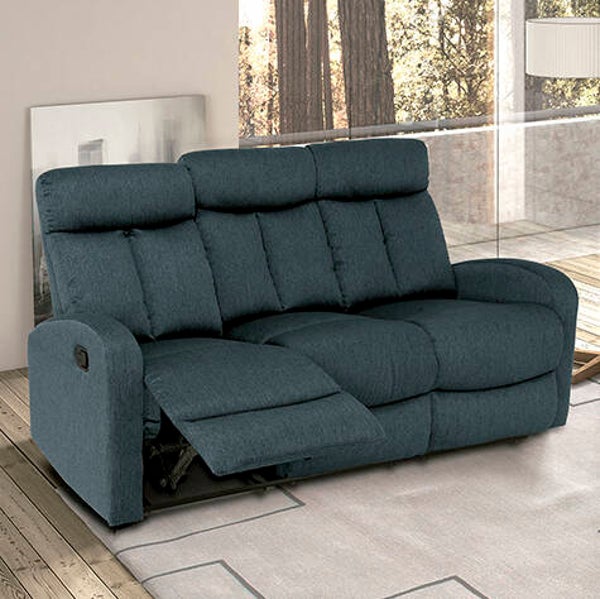 Sofá de 3 plazas relax manual con sistema de apertura con palanca. Los dos módulos de las puntas son relax, el del medio es fijo.