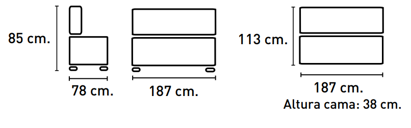 Sofá cama con sistema de apertura clic clac. Cama 113x187
