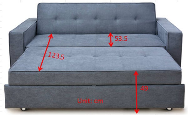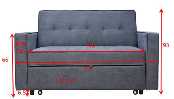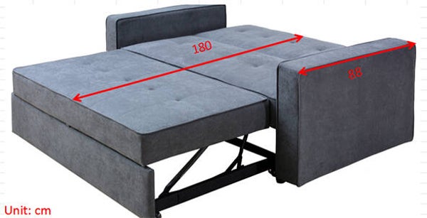 SOFÁ CAMA 167CM CON SISTEMA CLIC CLAC Y CARRO ELEVABLE GRIS O BEIGE