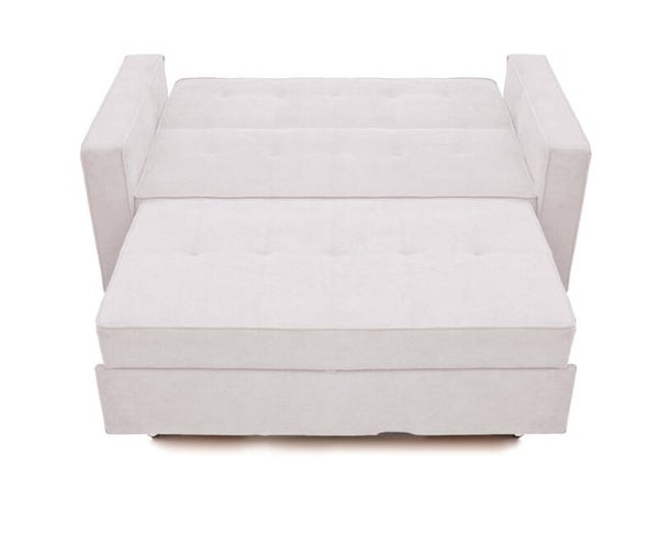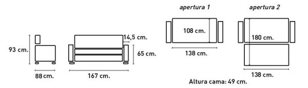 Sofá cama con respaldo reclinable de 3 posiciones con sistema clic clac y puff extraible elevable. Cama 138x180