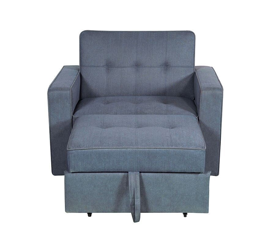Sofá cama con respaldo reclinable de 3 posiciones con sistema clic clac y puff extraible elevable. Cama individual 80x180
