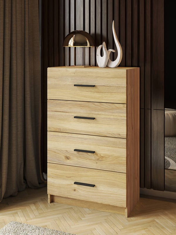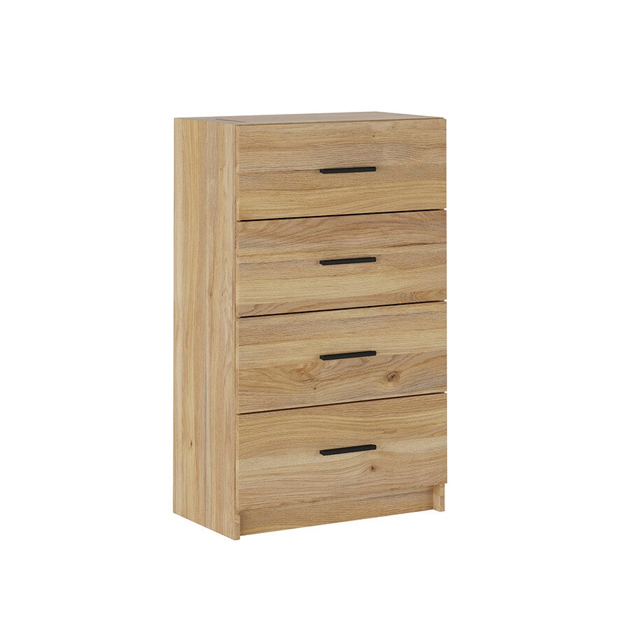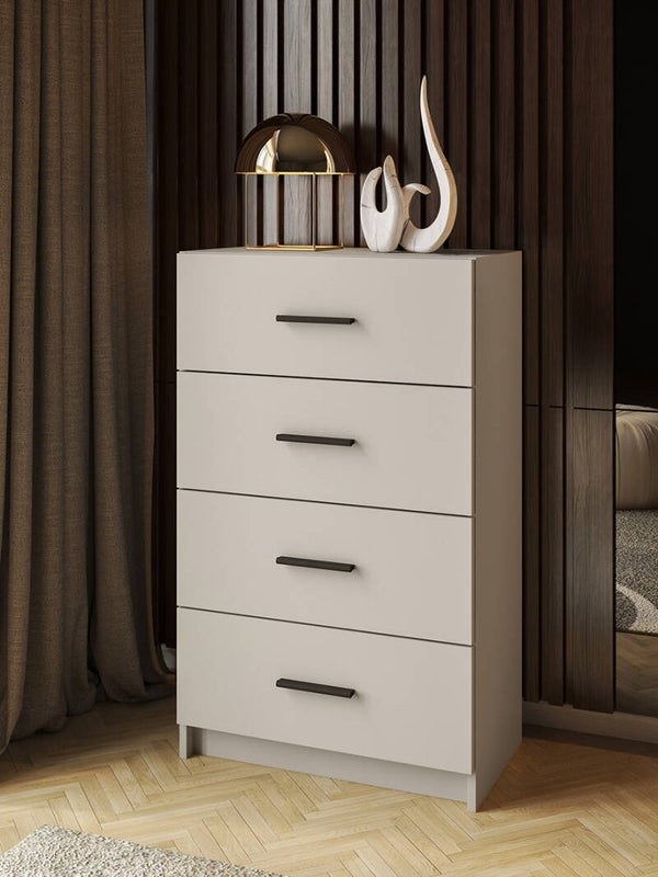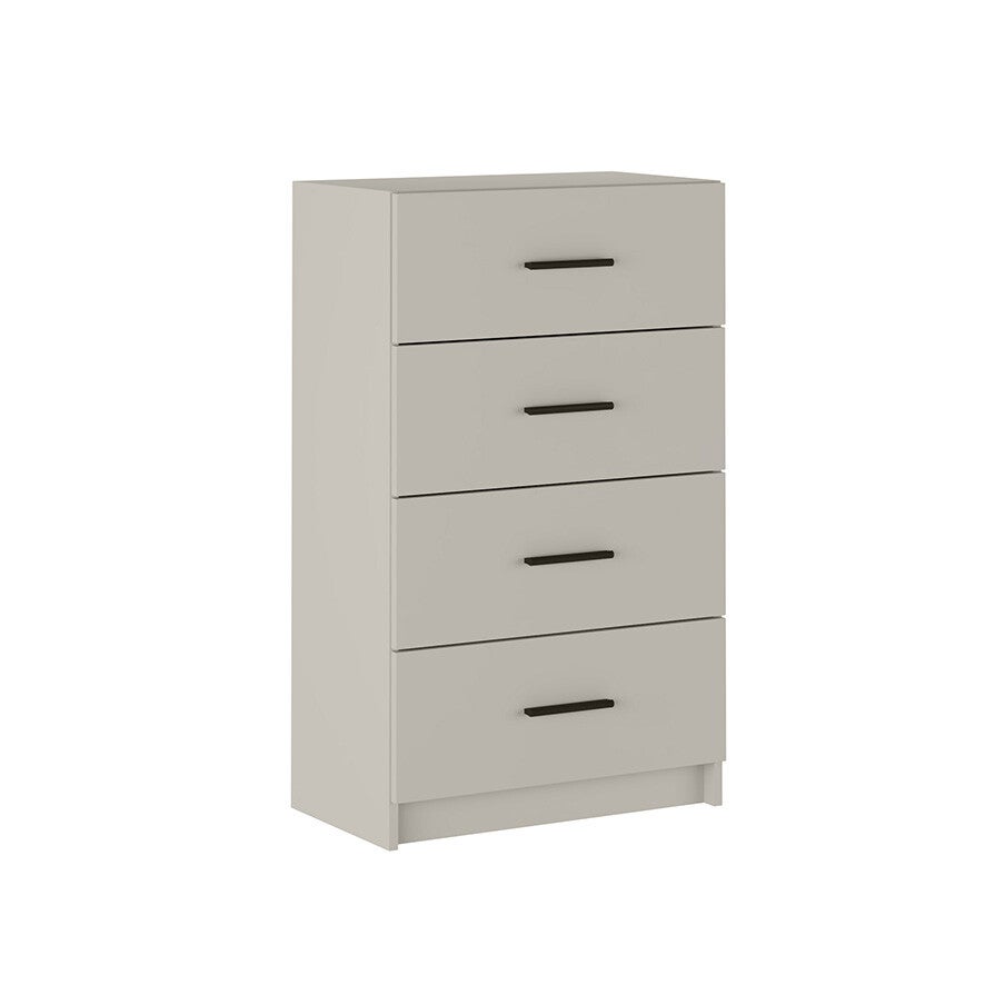 Sinfonier de cuatro cajones con tiradores en color negro.