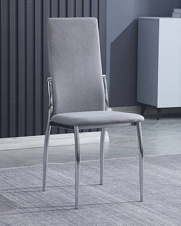 6 unidades de sillas tapizadas en tela gris y patas cromadas.
