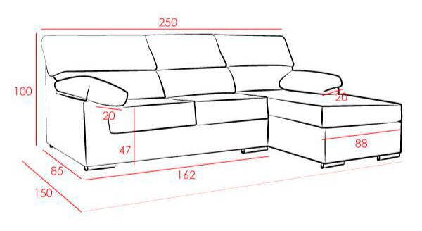 Sofá fijo chaise longue. Chaise longue en el lado izquierdo mirandolo de frente, como se ve en la foto.