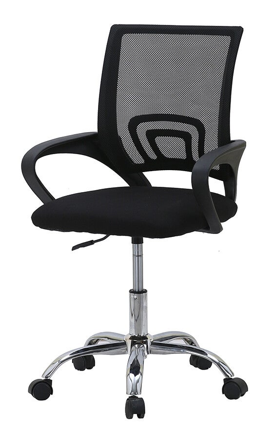Silla de escritorio giratoria con altura regulable y base cromada. Con tejido de malla respirable