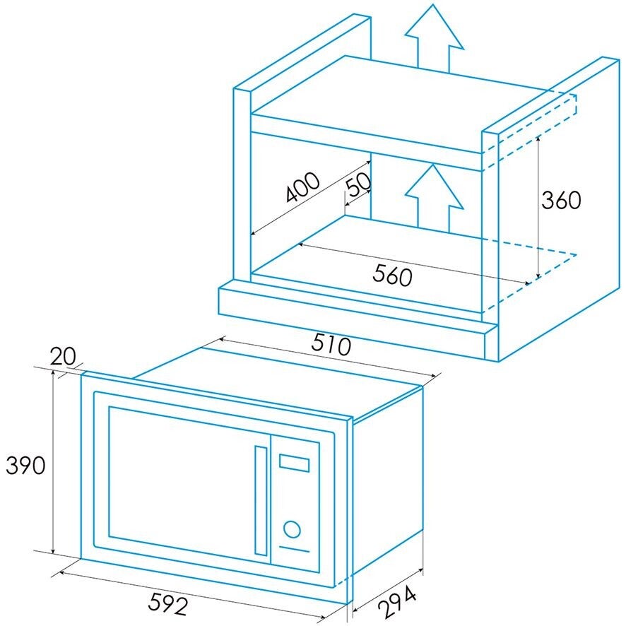Anchura incorporada (mm) 560
